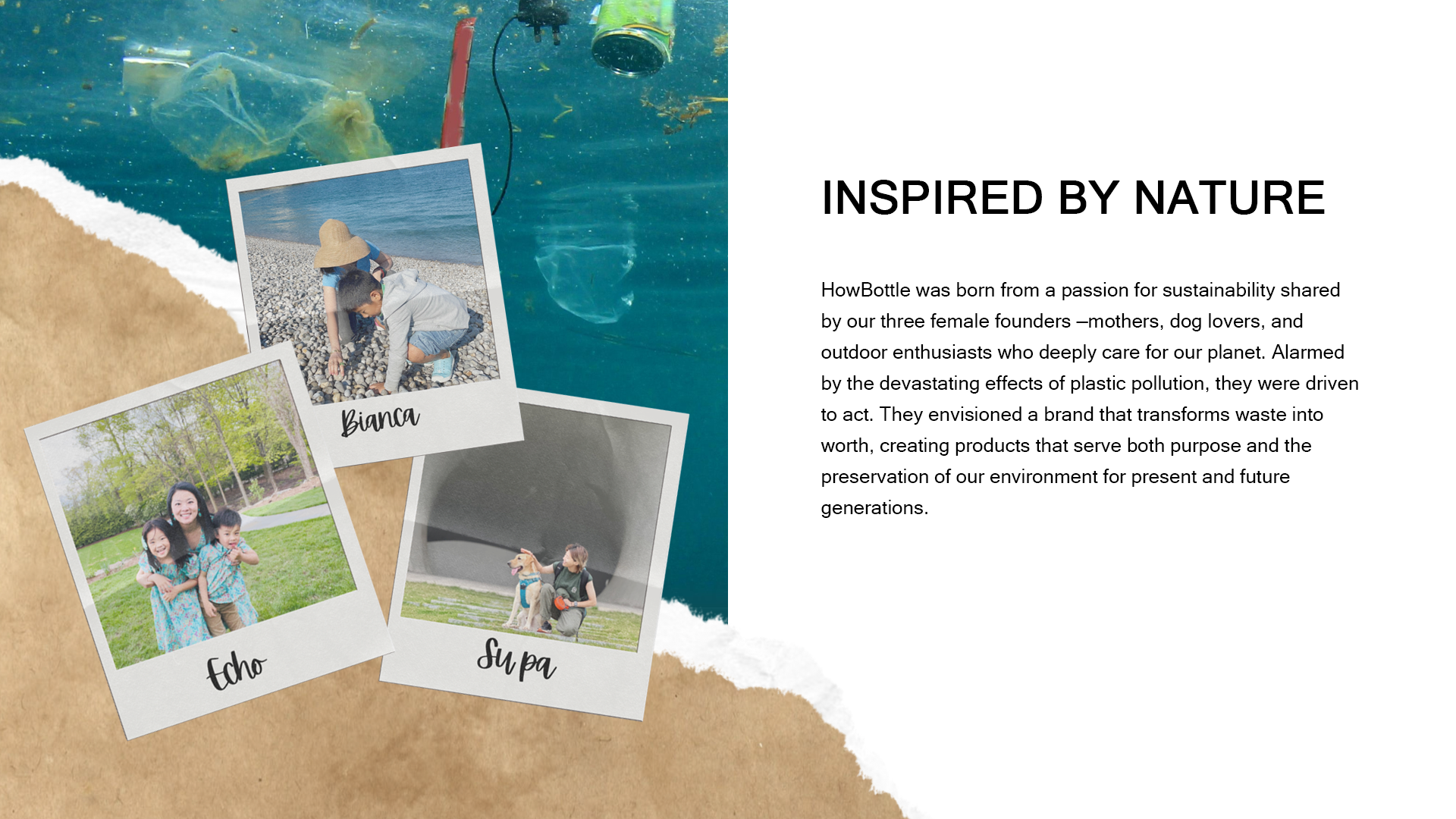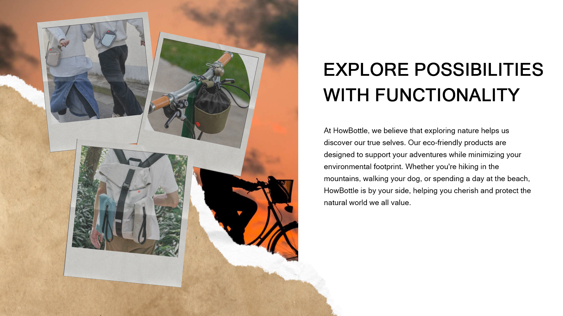 HowBottle is committed to a mission to cultivate a better relationship between humans and nature - one that is less polluting and more sustainable. With that in mind, HowBottle focuses on creating functional products for an active lifestyle by upcycling plastic waste. We aim to help everyone engage more deeply with nature and explore more possibilities in our lives,all while minimizing our environmental impact.